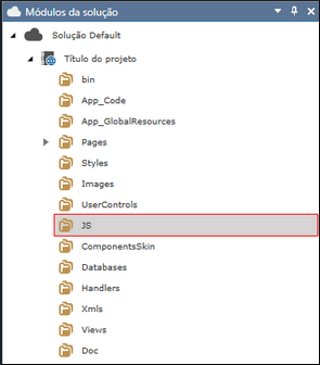 Os scripts devem ser armazenados na pasta JS, em destaque na figura abaixo: