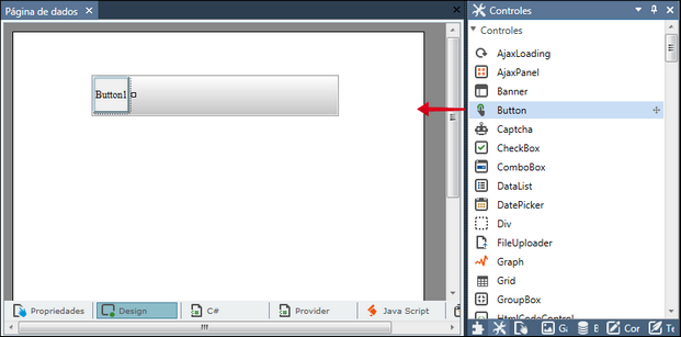 5. Clique sobre o controle Button e arraste-o para dentro da barra;