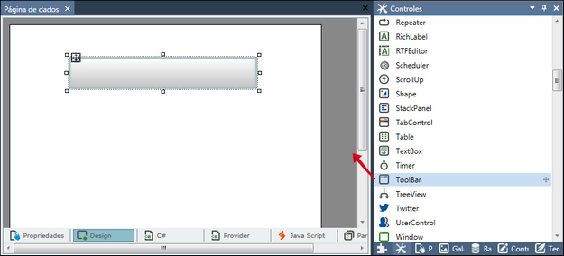 4. Clique sobre o controle ToolBar e arraste-o para a área de design;