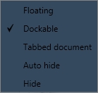 Dockable: Determina que o painel seja encaixado (docked);