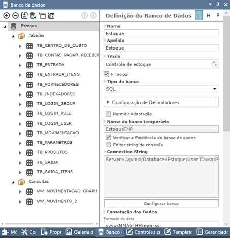 Nome: É o nome que será dado ao banco de dados no SQL. O Gvinci sugere o nome "Banco" a cada nova solução criada. Você deverá então definir um nome diferente. É importante que o nome do banco de dados não se repita, pois isso poderá causar dificuldades para conexão ao banco de dados.