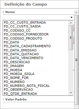 O campo que for escolhido na lista será inserido com todas as suas propriedades.