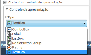 Os tipos de controle também podem ser selecionados: