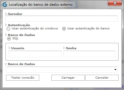 4. Preencha os dados para localização do banco, na caixa que aparecerá, conforme a figura abaixo: