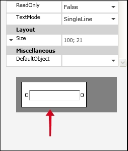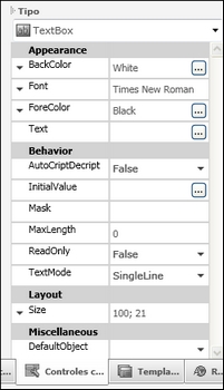 Logo abaixo das propriedades, o controle criado poderá ser visualizado: