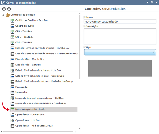 para adicionar um novo controle customizado;
