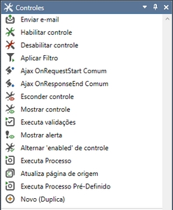 As ações pré-definidas estão disponíveis no painel Controles e variam de acordo com o módulo selecionado.