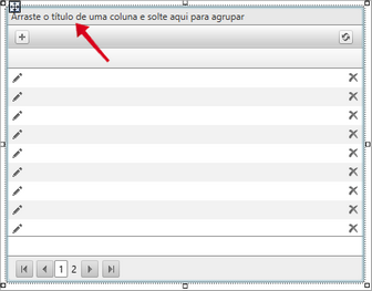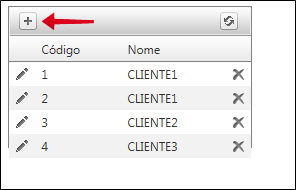 • AllowInsert: Ativa e desativa a exibição do botão "Adicionar", em destaque na figura abaixo. Este recurso permite que um novo item seja adicionado ao Grid, durante a execução da aplicação