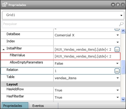 3. Na propriedade InitialFilter, clique no botão extensor: