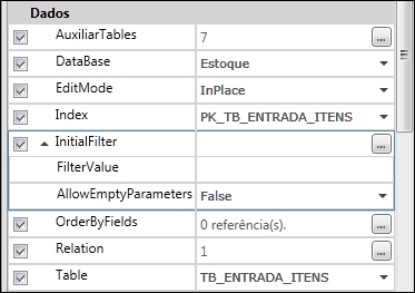 A propriedade AllowEmptyParameters indica que a filtragem poderá aceitar parâmetros vazios (True) ou não (False).