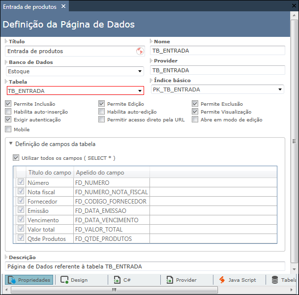 Agora, vamos determinar qual será a tabela que vai fornecer os dados para o Grid.
