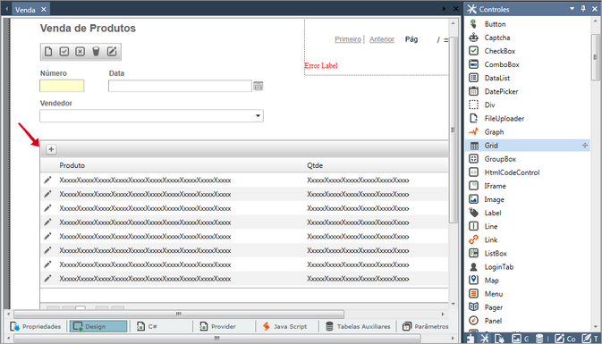 5. Em seguida, insira um controle Grid na mesma página;
