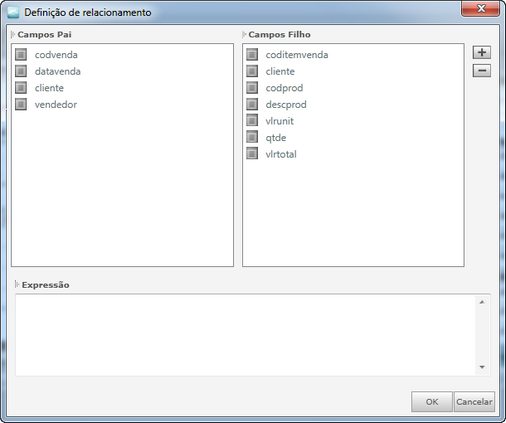 . Desta forma, o quadro "Expressão" será preenchido com o relacionamento;