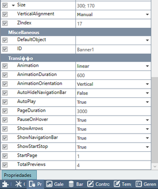 O controle Banner apresenta as propriedades conforme imagens abaixo: