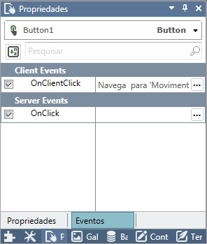 Para inserir uma ação aos eventos, utilize o botão extensor . Detalhes em Eventos.