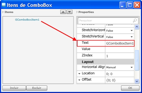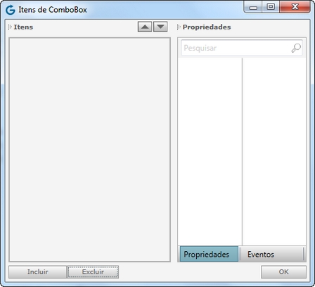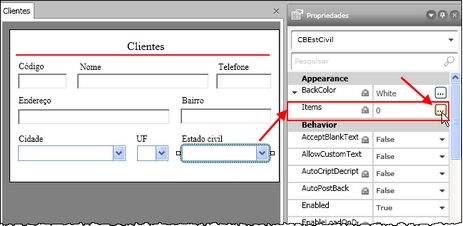 3. Clique no botão da propriedade Items. Observe a figura abaixo: