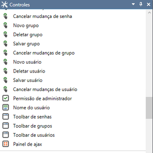 Toolbar de grupos: Insere uma barra de ferramentas que tratará dos grupos de usuários cadastrados.