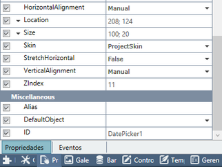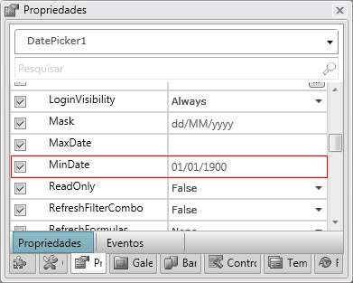 O controle DatePicker apresenta as propriedades conforme imagens abaixo: