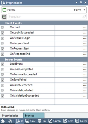 Para inserir uma ação aos eventos, utilize o botão extensor .