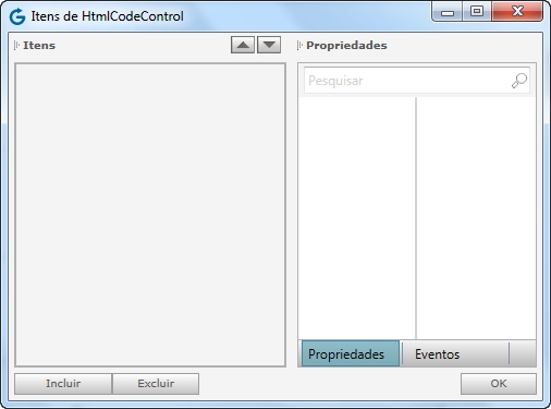 •Parameters / Parâmetros: Abre a janela Itens de HtmlCodeControl para inserir itens.