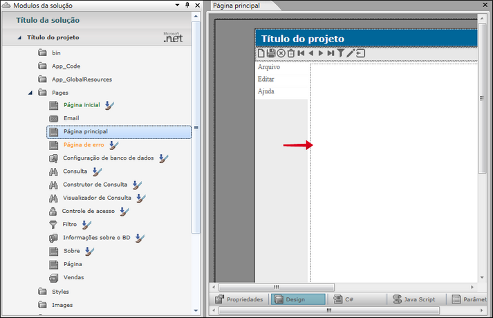 No exemplo Controle de estoque há dois controles IFrame na página principal: o IFrameStart que é exibido quando o usuário não está logado e o IFramePages que é exibido quando o usuário está logado, para exibir as páginas acessadas pelo usuário.
