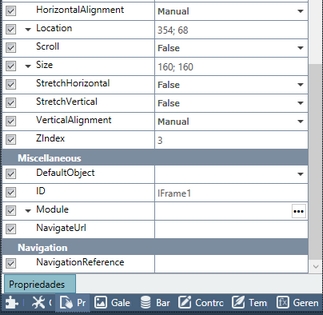 O controle IFrame apresenta as propriedades conforme imagens abaixo: