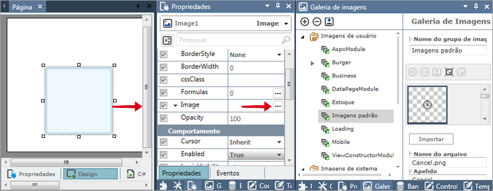 Ao utilizar a propriedade Image deste controle, a Galeria de Imagens será aberta, proporcionando que você escolha uma figura para o controle.