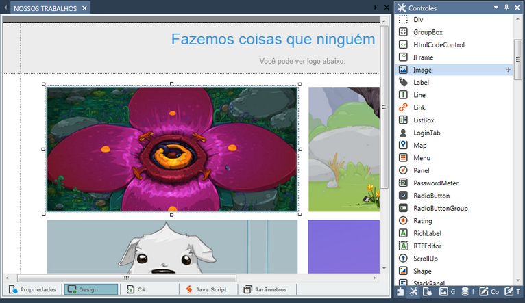 O controle Image insere uma figura no design.