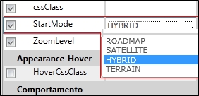 • ZoomLevel: Define o nível de aproximação da visualização (Zoom) • Location • Address: Permite que um endereço seja adicionado. A janela Fórmula poderá ser usada através do botão • CEP: Insira o CEP da localidade • City: Define a cidade que deverá ser exibida pelo controle Map • Country: Insira o nome do país desejado • FederalUnit: Define a unidade da federação: estado, província, departamento