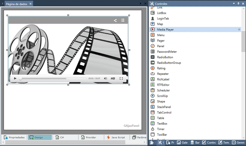 Insere um controle Media Player no design, destinado a executar vídeos do Youtube.