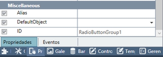 As propriedades do controle RadioButtonGroup são as seguintes: