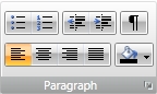 A seção Paragraph da barra de ferramentas do Rich Editor oferece os seguintes botões: