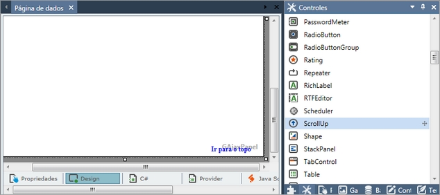 Permite inserir uma opção que irá rolar a tela para o topo, no canto inferior direito da página.
