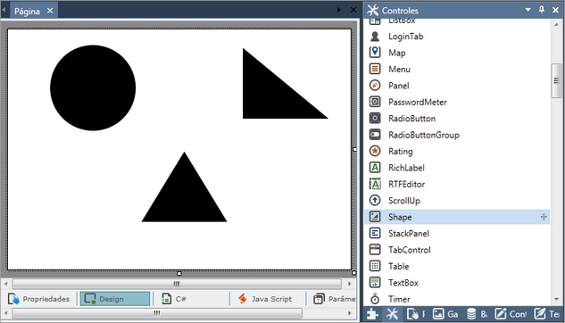 Permite inserir um objeto gráfico que pode ter 3 formas, definidas na propriedade Type: • Circle • Triangle1 • Triangle2