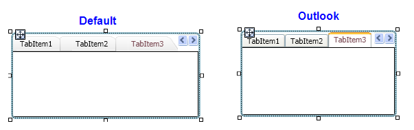 As figuras abaixo mostram o controle TabControl com 3 abas visíveis, em dois skins diferentes: