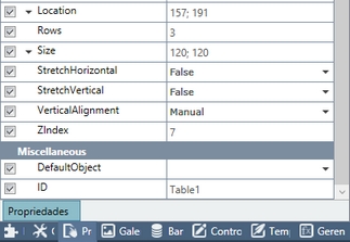 Além das propriedades comuns dos controles, destacamos as específicas deste controle: • Layout • Columns: Define a quantidade de colunas do controle • Rows: Define a quantidade de linhas do controle