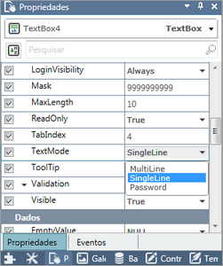 Caso seja necessário incluir mais de uma linha na caixa, a opção Multiline da propriedade TextMode dever ser habilitada.