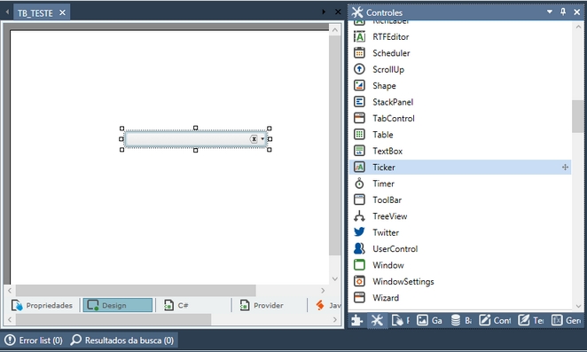 O controle Ticker insere um letreiro passando mensagens gravadas no banco de dados.