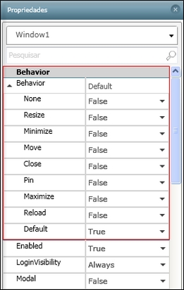 Além das propriedades comuns dos controles, destacamos as específicas deste controle: • Comportamento • Behavior / Comportamento: Determina o tipo de comportamento do controle. Os valores disponíveis para esta propriedade são exibidos na figura abaixo: