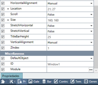 • Modal: Ativa e desativa o modo modal do controle. A janela modal sobrepõe as outras janelas quando exibida • NavigateUrl / Navegar Url: Permite inserir um endereço de uma página Web que pode ser exibida na janela quando a janela for carregada • Layout • TitleBarHeight / Altura da Barra de Título: Define a altura da barra de títulos do controle Window