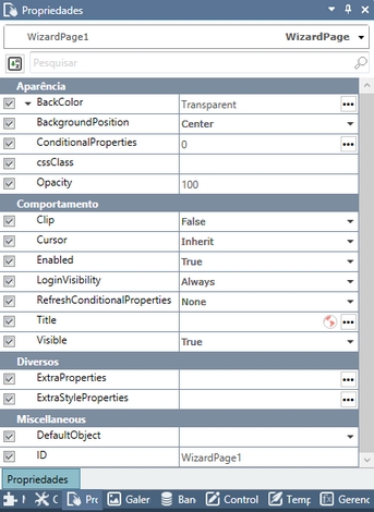 Propriedades das Páginas do Wizard