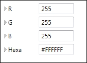 Também apresenta o hexadecimal correspondente da cor e um ponteiro para controlar a opacidade da cor.