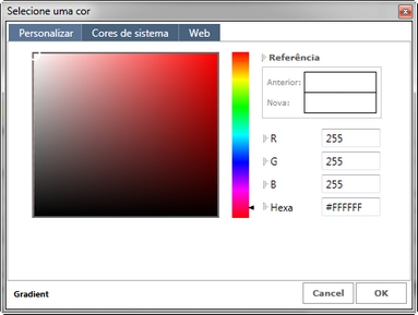 Personalizar: Permite que você escolha a cor desejada baseada no esquema RGB (Red, Green, Blue) - Vermelho,Verde e Azul.