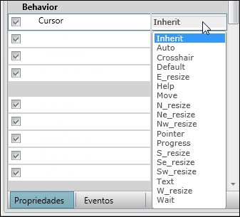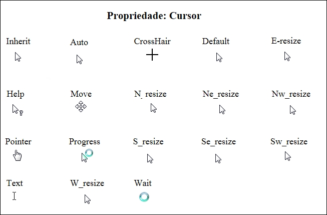 Você pode alterar a aparência do ponteiro do mouse quando o ponteiro estiver sobre um determinado controle. Para isso, basta selecionar um estilo na propriedade Cursor do controle desejado.