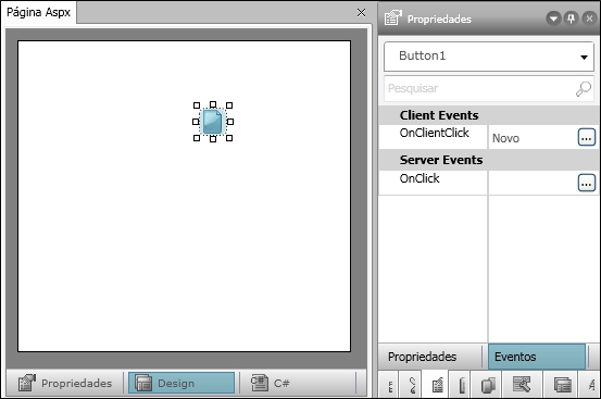 6. Observe que no evento "OnClientClick" foi inserida a ação "Novo":