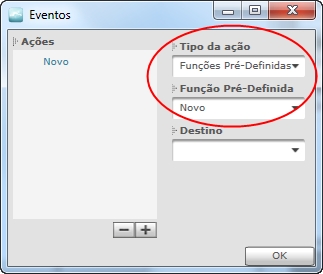 Funções pré-definidas: Permite selecionar uma função pré-definida que tenha como destino um determinado módulo ou controle.