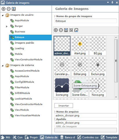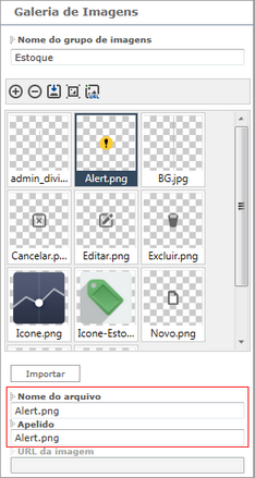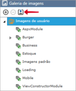 Na Galeria de Imagens você pode criar grupos de imagens que serão usadas na sua aplicação e adicionar as imagens a esses grupos.