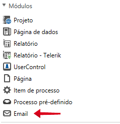 O módulo de E-mail está disponível no painel Módulos: