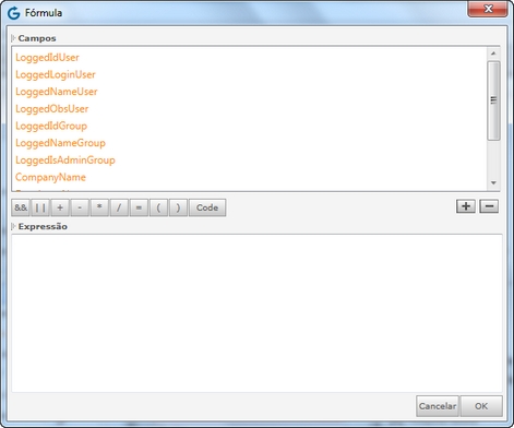 Em cada uma das opções acima, você pode clicar no botão para abrir a janela Fórmula e assim utilizar o Alias de um campo já existente ou uma variável disponível.