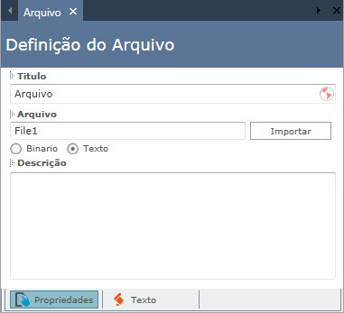Texto: Marque esta opção para um arquivo do tipo Texto. Ao marcar esta opção, o botão